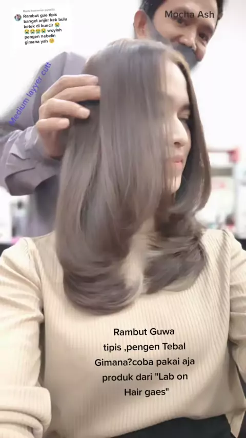 Membalas @purpliiii ini adalah model "Medium layyer cutt" ya gaes sangat best seller dan warna nya "Mocha Ash'' yg bikin wajah terlihat lebih cerah ##labonhair#kosmetik #penumbuhrambut