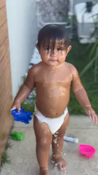 Théo tomando banho sozinho