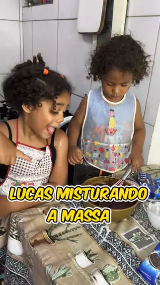 Lucas misturando a massa do bolo