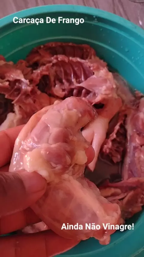 #DorsoDeFrango Carcaça De Frango Aqui Ainda Está No Vinagre Depois De Ferventar-la Mostro Ela Já Pronta Para o Consumo.