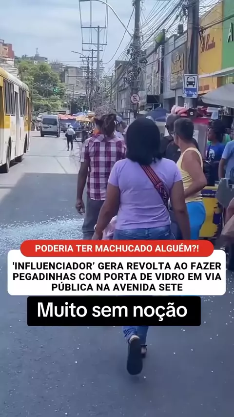 🎥 Influenciador causa polêmica com pegadinha perigosa em Salvador Um influenciador digital causou alvoroço nas redes sociais após publicar vídeos de uma "pegadinha" polêmica: ele jogou uma porta de vidro na rua, fazendo com que ela se quebrasse e espalhasse cacos para todos os lados. A ação, que poderia ter causado sérios acidentes, gerou indignação entre os internautas. Muitos criticaram a atitude, apontando a irresponsabilidade de colocar a segurança das pessoas em risco em nome de entreten