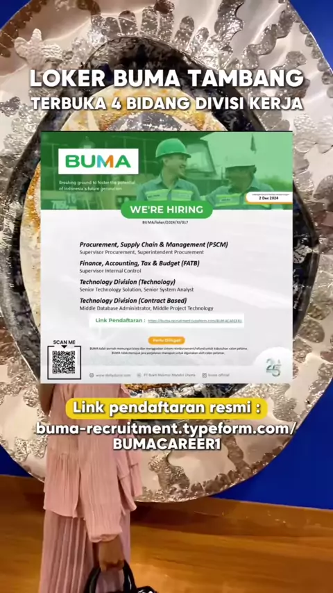 Siapa nih yang mau kerja dibuma pertambangan? Buma sekarang lagi buka loker untuk 4 divisi. Kamu siap apply? Terbuka untuk lulusan s1 #jasacv #ownerwova #pejuangloker #career #pertambangan #pertambanganindonesia #tambangbatubara #tambang #tambangbatubarakalimantan #buma #lokers1 #lokertambang #lokerpertambangan
