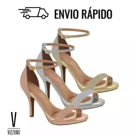 Dê uma olhada em Sandália Feminina Salto Fino Mini Shine Vizzano – Calcanhar Fechado, Glitter e Fivela para Festas
