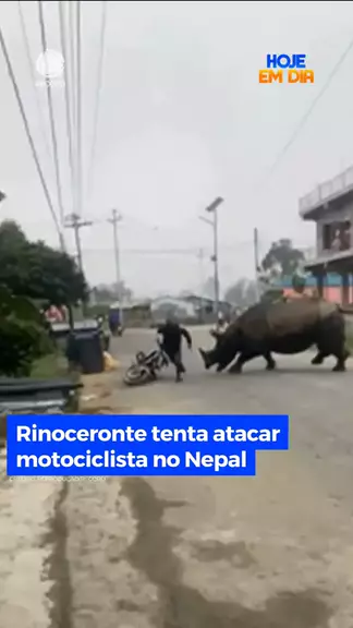 Fera em fúria! 🦏 Rinoceronte tenta atacar motociclista no Nepal. O homem conseguiu fugir a tempo antes de ser atingido. O animal ainda perseguiu o rapaz, mas desistiu e foi embora. Não há notícias sobre o paradeiro do rinoceronte #HojeEmDia #RECORD