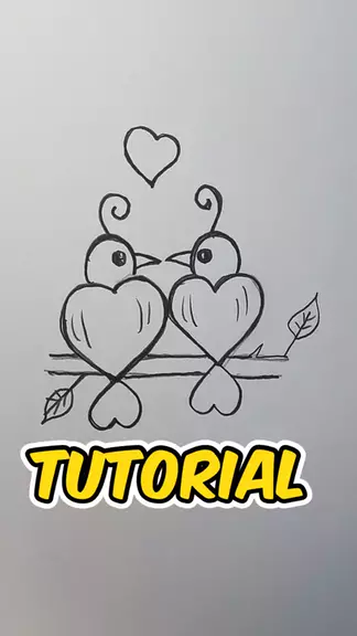 Tutorial passo-a-passo de uma maneira bem simples como desenhar um casal de pássaros apaixonados desenho romântico para iniciante