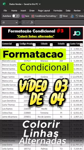 Formatação condicional no Excel! Colorir linhas alternadas.#ecxel #excelavancado #Condicional