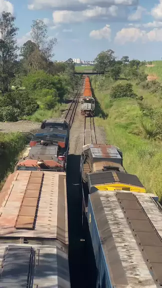 OLHA AÍ PESSOAL O CRUZAMENTO DESSE TRÊS TREM NA LINHA FÉRREA FOI INCRÍVEL DE PODER APRECIAR .