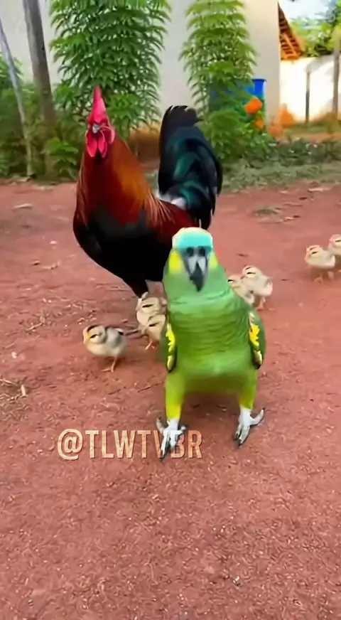 Loro reclamou com o galo sobre os pintinhos 🤣🤣🤣 #papagaio #papagaios #papagaiofalante #papagaioengracado #papagaiofofo brasileiro popular
