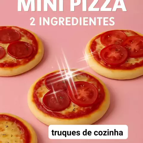 đ Mini Pizza com 2 Ingredientes Ingredientes da Massa: âą 1 xĂcara de iogurte natural (pode ser grego sem açĂșcar) âą 1 xĂcara de farinha de trigo com fermento (ou 1 xĂcara de farinha + 1 colher de chĂĄ de fermento em pĂł) Cobertura (opcional): âą Molho de tomate âą Queijo ralado âą Presunto, tomate, orĂ©gano, calabresa, etc. Modo de Preparo: Misture a massa: Em uma tigela, misture o iogurte com a farinha atĂ© formar uma massa lisa e homogĂȘnea. Se estiver grudando, adicione um mais de trigo