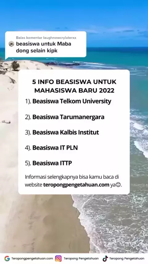 Balas @laughnowcrylaterxx 5 Beasiswa Untuk MABA 2022. #info #beasiswa #maba #2022
