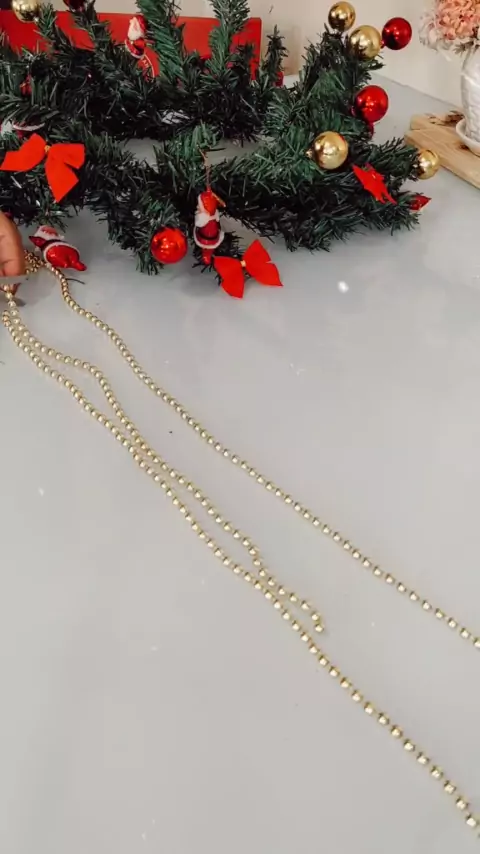 Lustre de Natal, feito com guirlanda e enfeites natalinos! Me segue no insta Lar da Thamis #donasdecasa #natal2021 #enfeitesdenatal #lustre #guirlanda