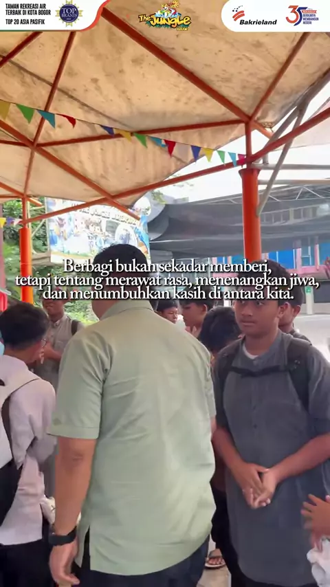 jumat mubarakkk! Indahnya berbagi! ✨ Pak GM @thejunglebogor turun langsung menyapa pengunjung dan berbagi ban gratis di momen #JumatBerkah. Siapa nih yang mau disapa juga? #thejunglebogor #waterpark #wisatabogor #jumatberkah