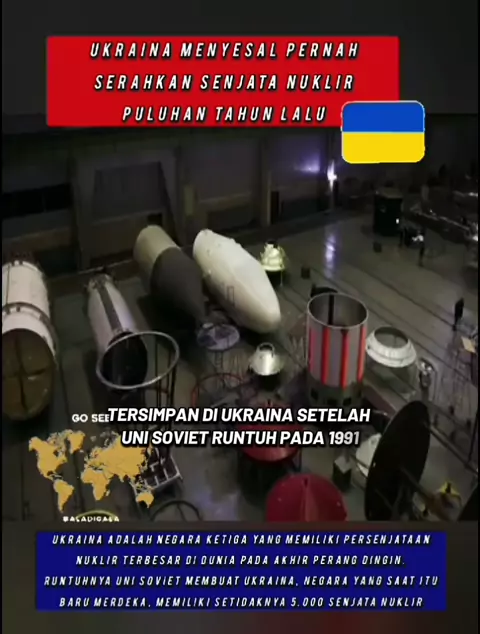 Ukraina Menyesal Pernah Serahkan Senjata Nuklir Puluhan Tahun Lalu Ukraina adalah negara ketiga yang memiliki persenjataan nuklir terbesar di dunia pada akhir Perang Dingin. Runtuhnya Uni Soviet membuat Ukraina, negara yang saat itu baru merdeka, memiliki setidaknya 5.000 senjata nuklir #ukraine #russia #trending #fyp