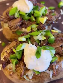 Mississippi pot roast loaded potatoes! #bakedpotato #loadedbakedpotato #spuds #potroast #comfortfood #traegergameday
