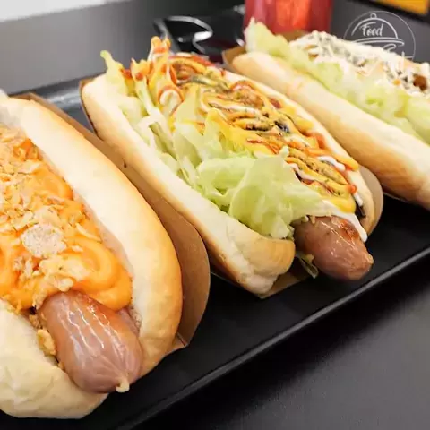 Sanduíche estilo hot-dog americano - Comida de rua coreana. #Coreano #ComidaCoreana #ComidaDeRuaCoreana #Fábrica