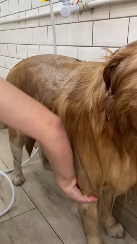 Banho com Tutti no Golden Retriever #golden #pet #humor #shampoo