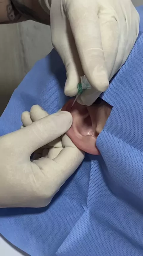 Perfuração do Hélix nessa gata linda❤️ ficou um arraso, a intenção da gata é que assim que o furinho estiver cicatrizando colocará uma argola cravejada😍😃 #piercinghelix #piercingseguro #piercinghumanizado #piercingalvorada
