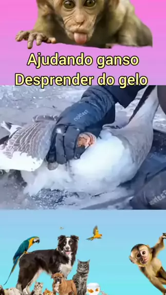Humano ajuda ganso a se desprender de gelo #ganso #gelo #animais #EstrelaDeFamília #humano