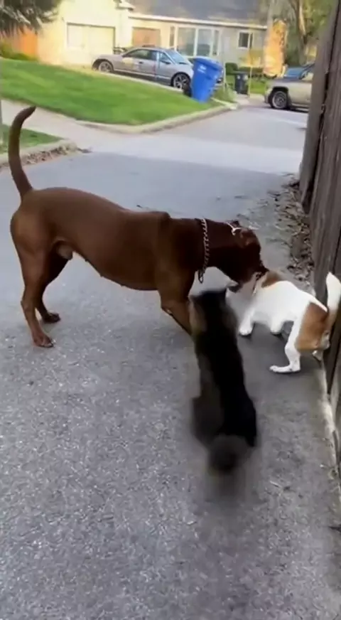O herói inesperado! Gato interrompe a "briga" de cachorros e salva o dia #gato #cachorro #kwai #viral #fy