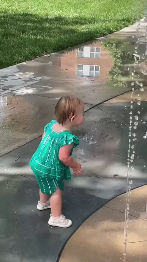 Eliza’s first splash pad experience ☀️ #voiceeffects #voiceover #babyvoiceover #babyvoice #fyp #foryoupage #laughingbaby #sillybaby #toddlertok.