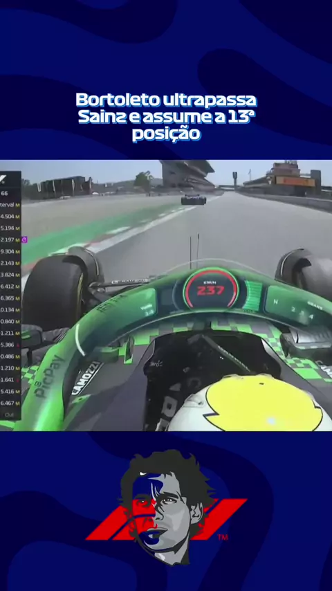 Bortoleto ultrapassa Sainz e assume a 13ª posição. #formula1 #automobilismo #veiculos #corrida #KwaiTopEditor