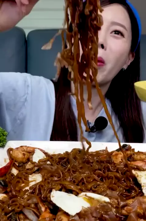 Seafood Jjajang Ramen with Shrimp Spicy Chicken Skewers Korean Ramen #ssoyoung #mukbangssoyoung #bigbites #mukbang #asmr #food #mukbangkorea #koreanfood #seafood #jjajangramen #spicychicken #favor