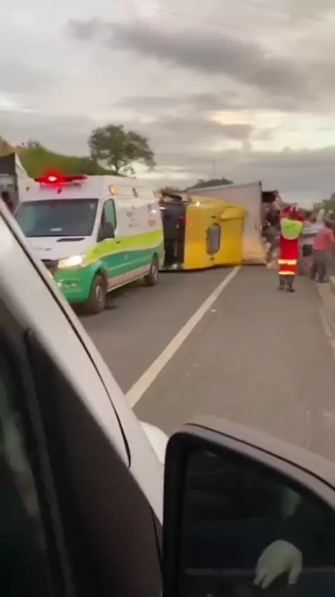 Uma carreta que tombou na manhã desta sexta-feira (12), na BR 101 em Anchieta. Foi saqueada por populares que passavam no local. 🥲 #acidente #br101 #anchieta #vergonha #roubo