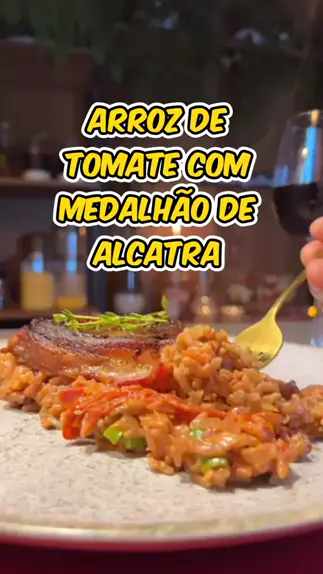 Ingredientes: 150g de tomatinhos 3 dentes de alho 1 cebola 200ml de vinho tinto 1 xícara de arroz 1 xícara de água 2 colheres de requeijão 100g de parmesão Sal, pimenta do reino e cheiro verde ou manjericão a gosto Medalhão: Medalhão de alcatra Bacon em tiras Ramo de tomilho Sal e pimenta do reino a gosto #food #mukbang #comida #receitas #receitafacil