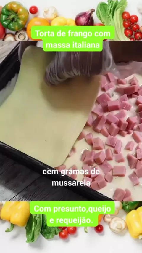 Torta de frango com massa italiana com queijo,presunto e requeijão . #culinaria #receitas #tortadefrango