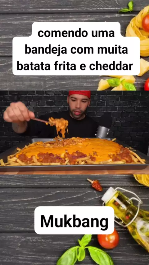 comendo uma bandeja com muita batata frita e cheddar #batatafrita #cheddar #comida #mukbang