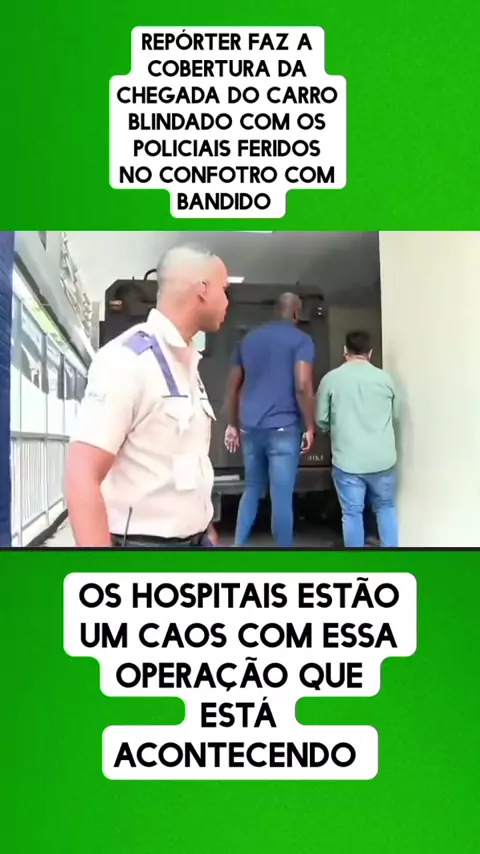 repórter faz a cobertura da chegada do carro blindado com os policiais feridos no confotro com bandido