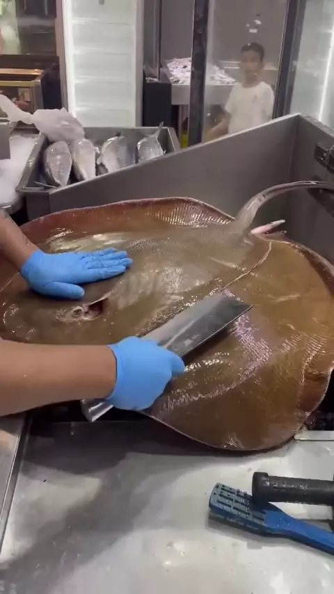 A maior arraia grande (pari) cortando peixes Habilidade incrível #shorts