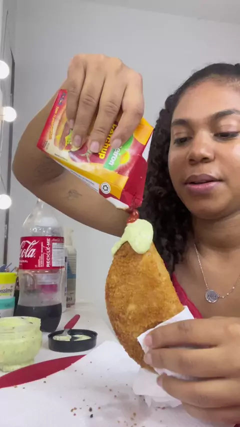 Vamos jantar comigo, hoje foi pastel de carne e queijo #pasteldecarne #pastel #comendomuito