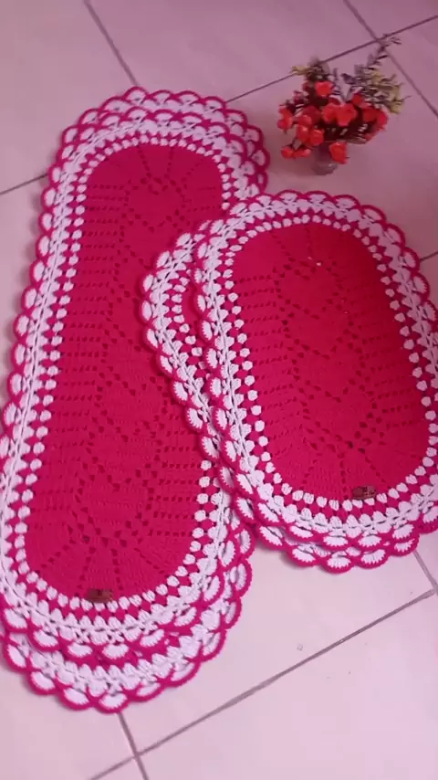 Sim foi eu que fiz . com muito carinho e dedicação . Conjunto de cozinha 4 peças na cor Pink 💕 #mundo #barbante #crochê🧶 #tapetedecroche