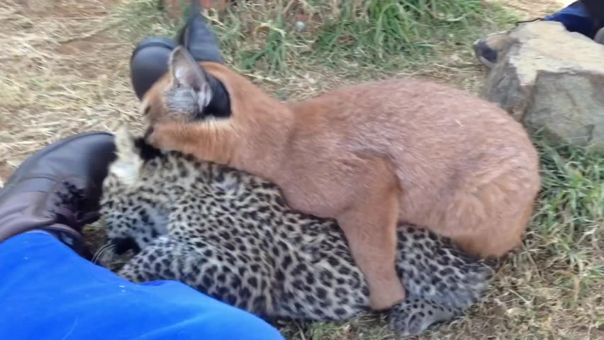 Ollie (Caracal), Nova (Black Leopard) and Aurora (Spotted Leopard) #viral #leopard #caracal