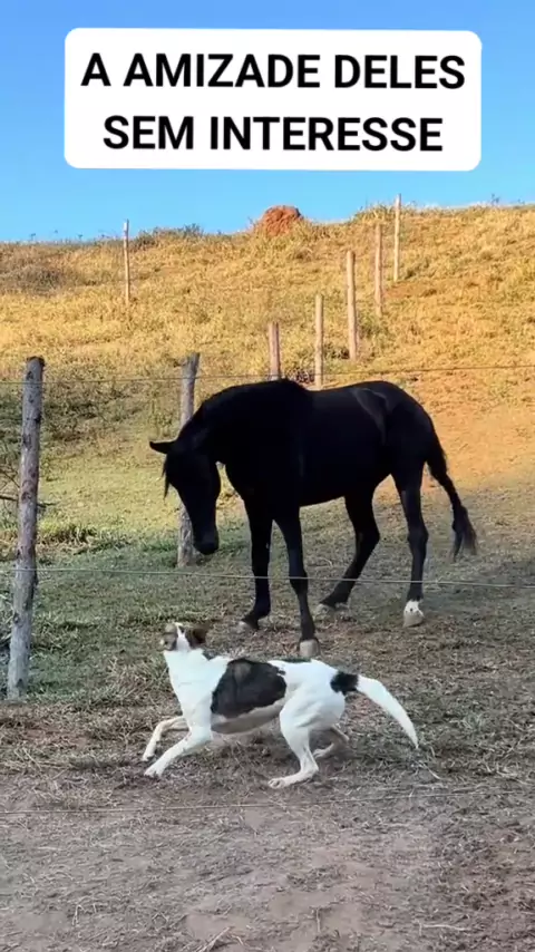 Uma amizade improvável, de um cavalo é um cachorro. #Kwaipets #animais #animaissevalgens #cavalo