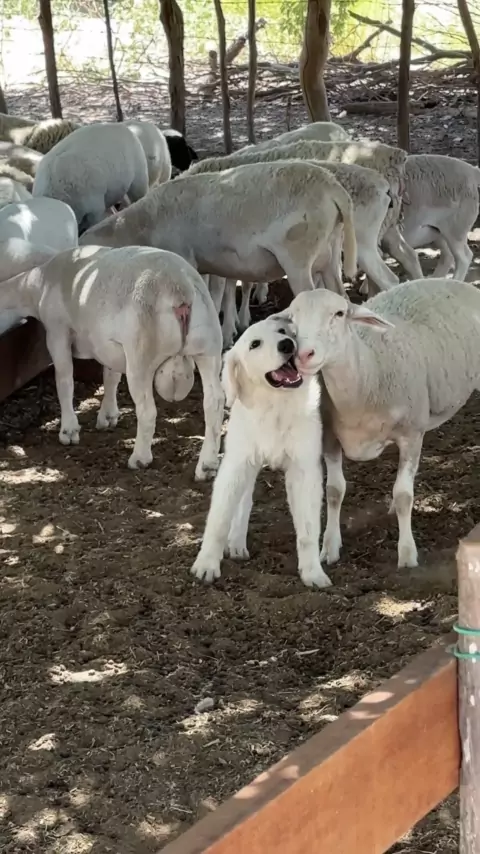A cachorrinha está muito feliz com as ovelhas #agro #fazenda #roça