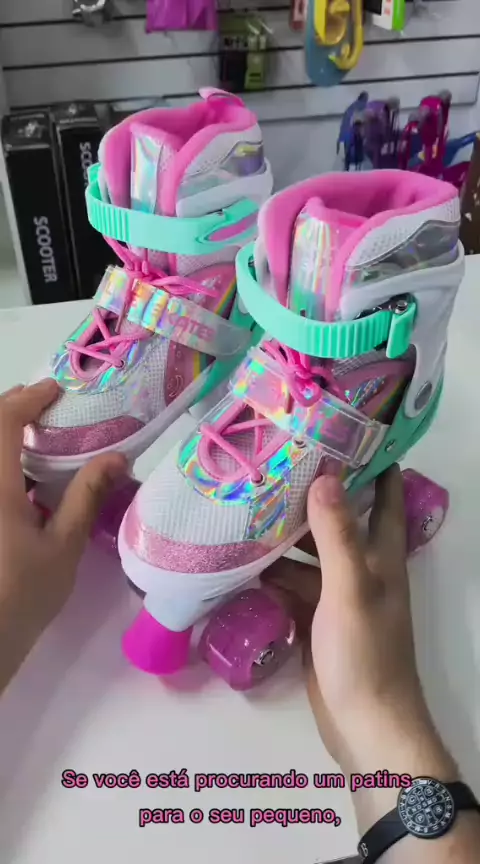 Patins roller 4 Rodas ARCO ÍRIS Com Luz De LED E Glitter Modelo Premium #achadoshop