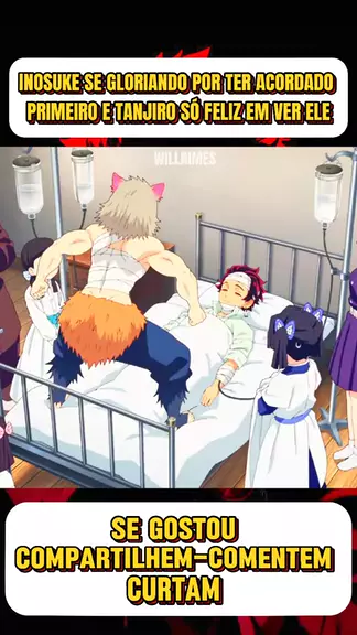 Inosuke se gloriando por ter acordado primeiro e tanjiro só feliz em ver ele #animacao #animescene #anime #foryou More