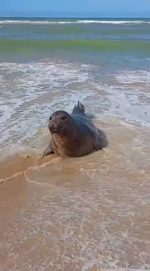 leão marinho aparece na praia em Trancoso, praia de itapororoca