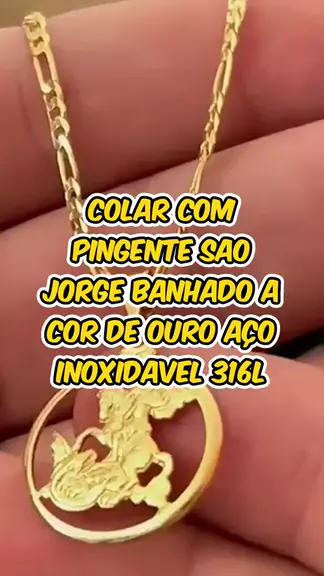 Colar Com Pingente Sao Jorge Banhado A Cor de Ouro Aço Inoxidavel 316L #colar #pingente #aço #ouro #viral