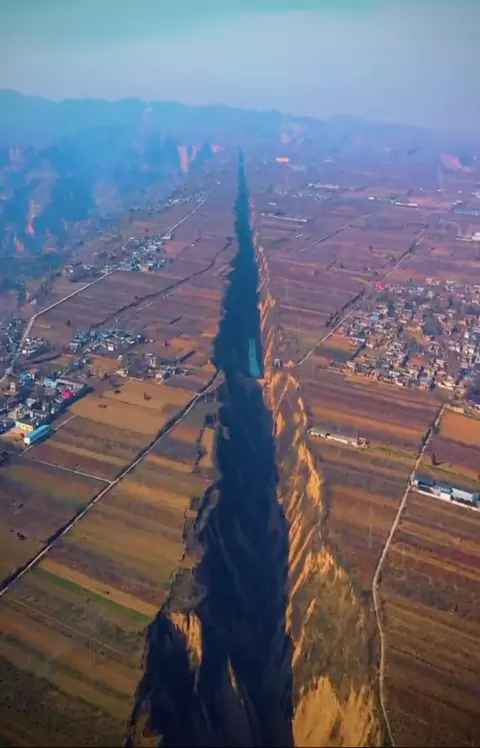 O vale do Rift está localizado em Pinglu, Shanxi, no planalto de Loess, uma área montanhosa no centro-norte da China que cobre cerca de 400.000 km quadrados. Foi formado devido a movimentos dentro da crosta terrestre e tem cerca de 10 km de extensão. #misterio #China #planeta #CrescerNaFamília #MemeAfazenda