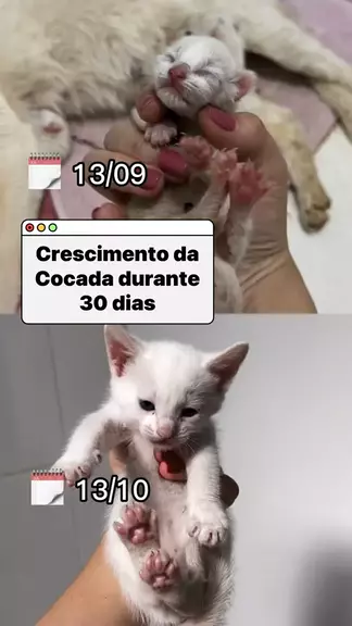 Crescimento durante 30 dias da Cocada recém nascida 🥹🤍🐱 #topz