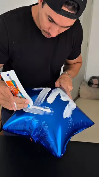 Ele fez um balão personalizado com creme dental 🦷