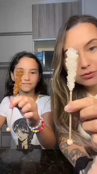 Comendo cristal de açúcar
