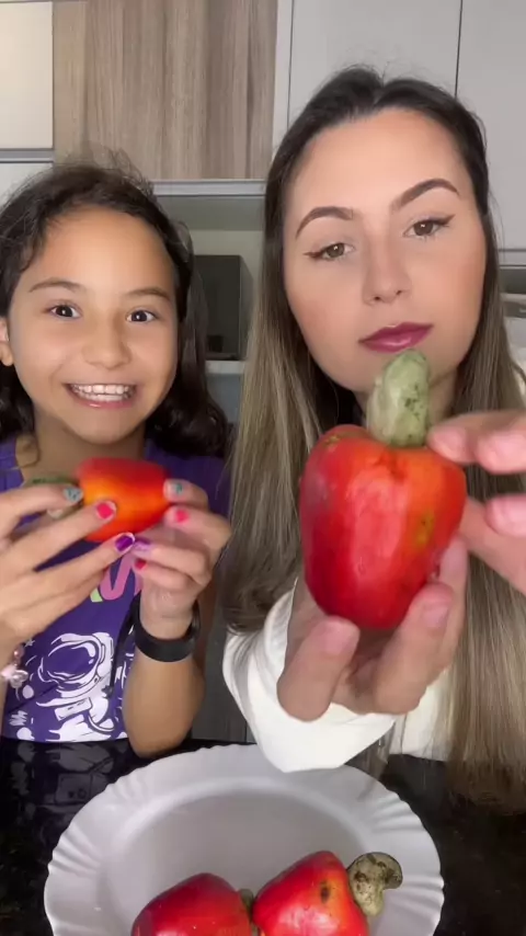 Comendo caju frutas estranhas exóticas