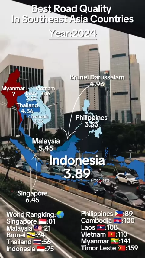 Quality of Roads in Southeast Asia Countries 2024ππ#country#world#asia#america#africa#europe#australia#sea#singapore#malaysia#brunei#thailand#indonesia#philippines#cambodia#laos#vietnam#myanmar#timorleste#arab#latina