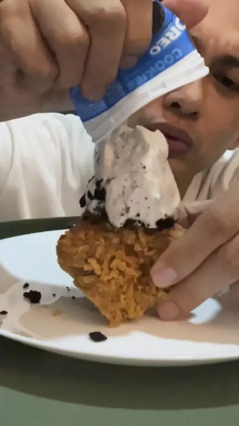 #eksperimenmakanan yukkk cobain makanan aneh kayak aku sumpah aku eneq beneran loh ini rasa gurih campur manis nya susu dr es krim .. nah sekarang aku tantang kamu buat challenge ini @SnackVideo Official(O150000033094608)