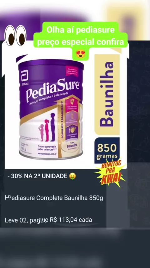 olha aí - 30% NA 2ª UNIDADE 🤑 Pediasure Complete Baunilha 850g Leve 02, pague R$ 113,04 cada #pediasure #suplemento #afazendanokwai #chocolate #paguemenos