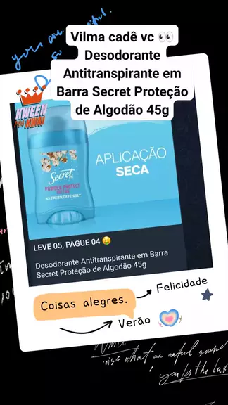 Vilma cadê vc 👀Desodorante Antitranspirante em Barra Secret Proteção de Algodão 45g #desodorante #protecao #algodao #paguemenos